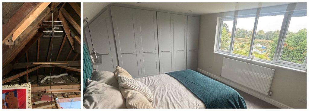 Buckley Loft Conversions surveyor visited this client on various occasions to discuss their expectations and ideas of what they wanted to achieve with their loft conversion, in their beautiful West Midlands family home. When it came to the planning side of things a property history search was conducted by our administrators with the local council to determine whether planning permission was required for the proposed dormer, this particular project did not require planning permission as the proposed conversion fell under the properties “permitted development rights” all projects will require applications from building control. for more information on planning please visit our planning & construction page here. Buckley’s got to work on creating a dormer for the rear of the property to gain the appropriate head height and also allowing lots of natural light into their new bedroom and En-suite of the loft conversion. Please see below some of the before, during & after photographs of this great new conversion!