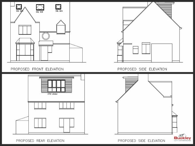 The plans show the external elevations for this proposed loft conversion, this conversions will create a master bedroom and en-suite for our clients.