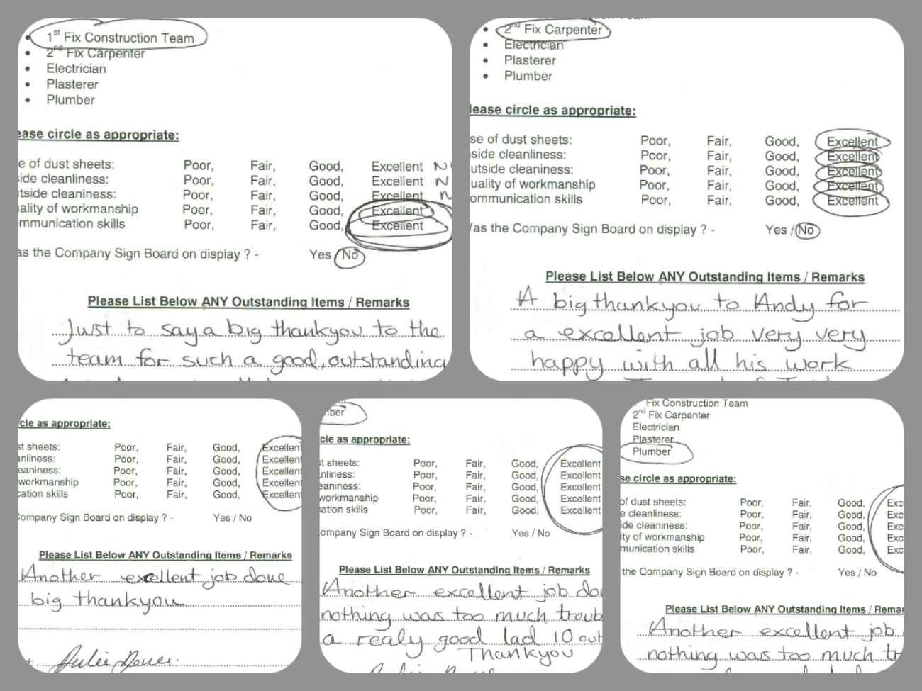 At the end of each completed job our clients send back the satisfaction certificates for each tradesman that have been working on their conversion.