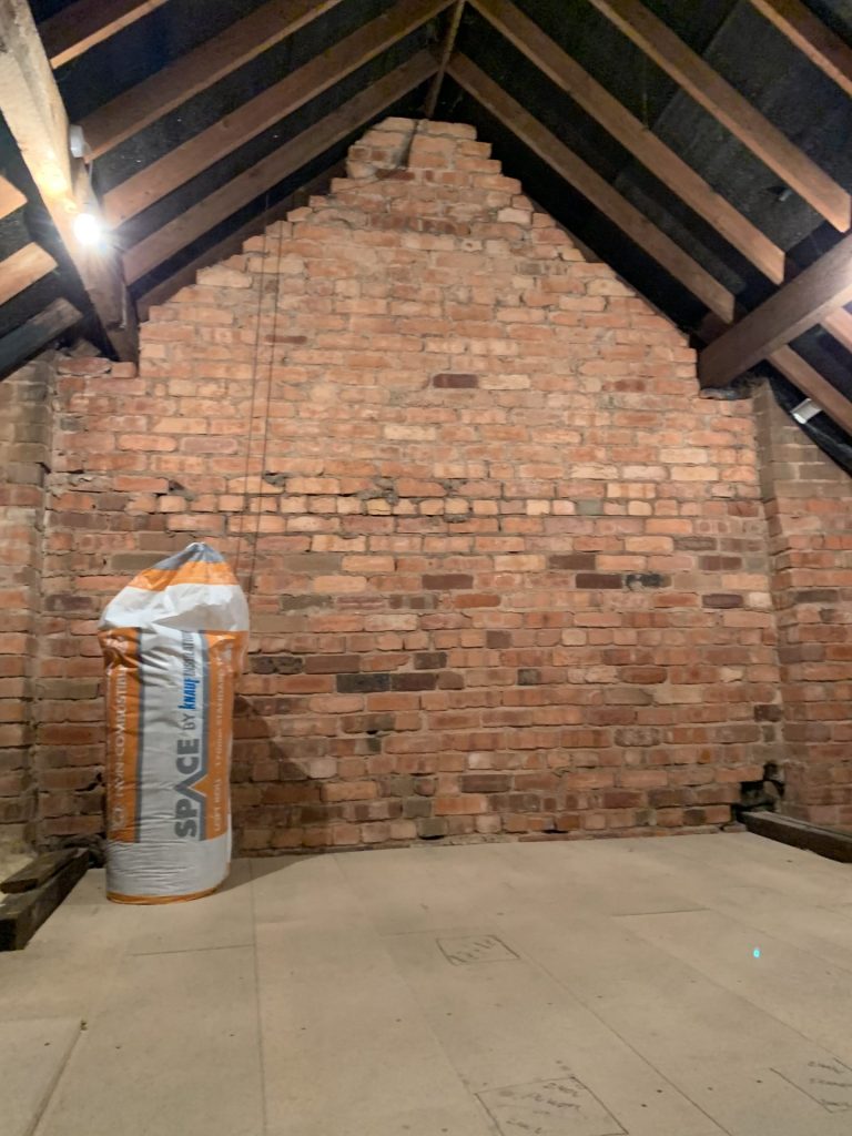 The Client’s loft had already been cleared in preparation for the loft conversion to start. The carpenters then came in to the loft to start the insulation process, removing beams and replacing with stud work to separate the bedroom. The Velux loft windows were constructed into the client’s existing roof creating a bright & spacious room. Once the structure of the loft conversion was in place it was then being prepared for the installation of the bespoke staircase to match the existing. Below are some photographs of the loft before & during the construction.