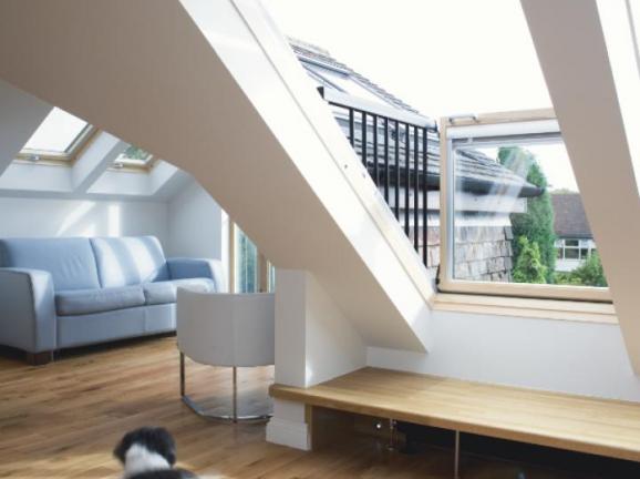 Create the WOW factor in your home by opening up your room and adding value to your property. The beauty of the Cabrio Balcony System is that from an external aspect it looks like a typical Velux roof light window when closed, but within seconds it turns into a balcony bringing in the outdoors inside like in the picture below.